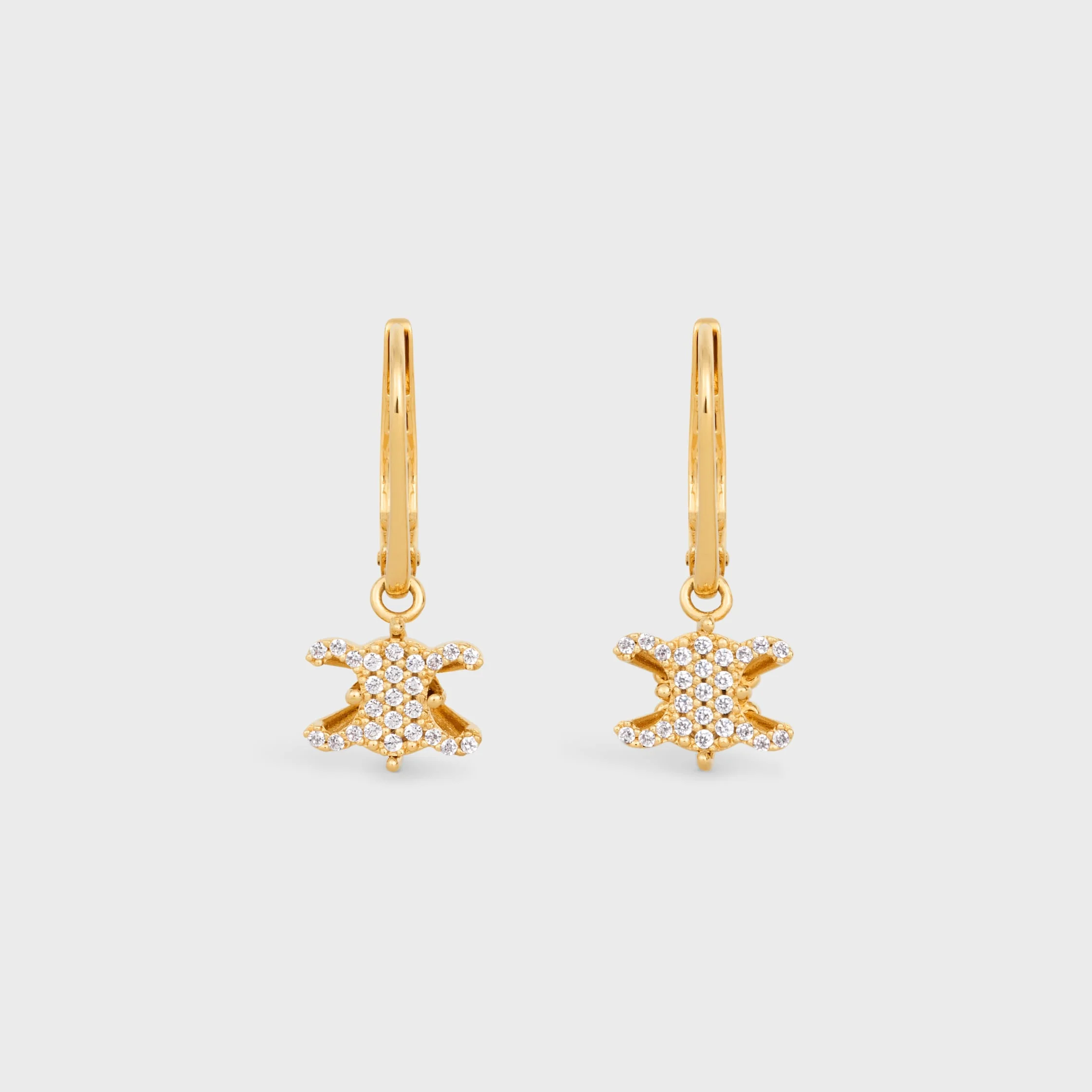 DETAILS TOTAL LENGTH 0.9 IN (2.3 CM) BRASS AND CRYSTALS NICKEL FREE ENGRAVED CELINE SIGNATURE FOR PIERCED EARS REFERENCE : 461NU6BCZ.35OR