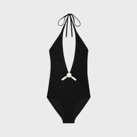 ONE-PIECE SWIMSUIT WITH TRIOMPHE RING IN MATTE JERSEY DETAILS 76% POLYAMIDE 24% ELASTANE LINING 76% POLYAMIDE 24% ELASTANE CLASSIC FIT PLUNGING V-NECKLINE AND CUTOUTS WITH TRIOMPHE RING TIE CLOSURES ON THE NECK WITH TRIOMPHE AGLETS MADE IN FRANCE REFERENCE : 2Z692152C.38NO