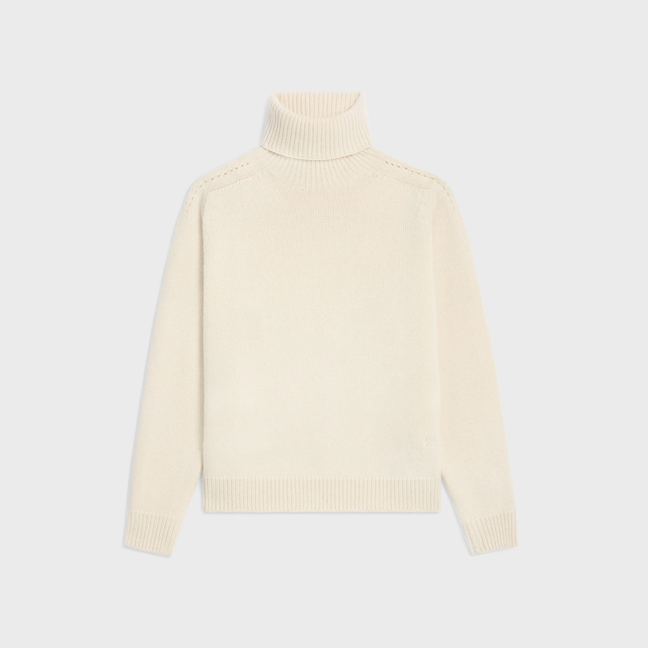 DETAILS 100% CASHMERE LOOSE FIT TURTLENECK "LES JOURS CELINE" DETAILS ON THE SHOULDERS RIBBED TRIM MADE IN ITALY REFERENCE : 2A57I384D.01AV