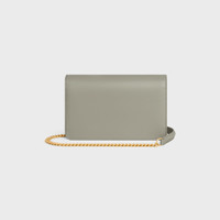 DETAILS 8 X 5 X 2 IN (19.5 X 12 X 4 CM) CALFSKIN CALFSKIN LINING GOLD FINISHING HAND CARRY, SHOULDER CARRY AND CROSS-BODY CARRY TRIOMPHE METALLIC SNAP BUTTON CLOSURE ONE MAIN COMPARTMENT SIX CREDIT CARD SLOTS ONE FLAT POCKET REMOVABLE CHAIN WITH WITH SHOULDER PAD WITH 20 IN (50 CM) DROP REFERENCE : 10L033DPV.31GC