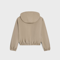 DETAILS 57% COTTON 43% POLYAMIDE LINING 100% VISCOSE TRIOMPHE EMBROIDERY CLASSIC FIT HOOD WITH ADJUSTABLE DRAWSTRING AND CELINE PARIS-ENGRAVED METAL AGLETS 2 WELT POCKETS ELASTICATED WAISTLINE AND CUFFS ZIP CLOSURE MADE IN ITALY REFERENCE : RV1670968.02BG
