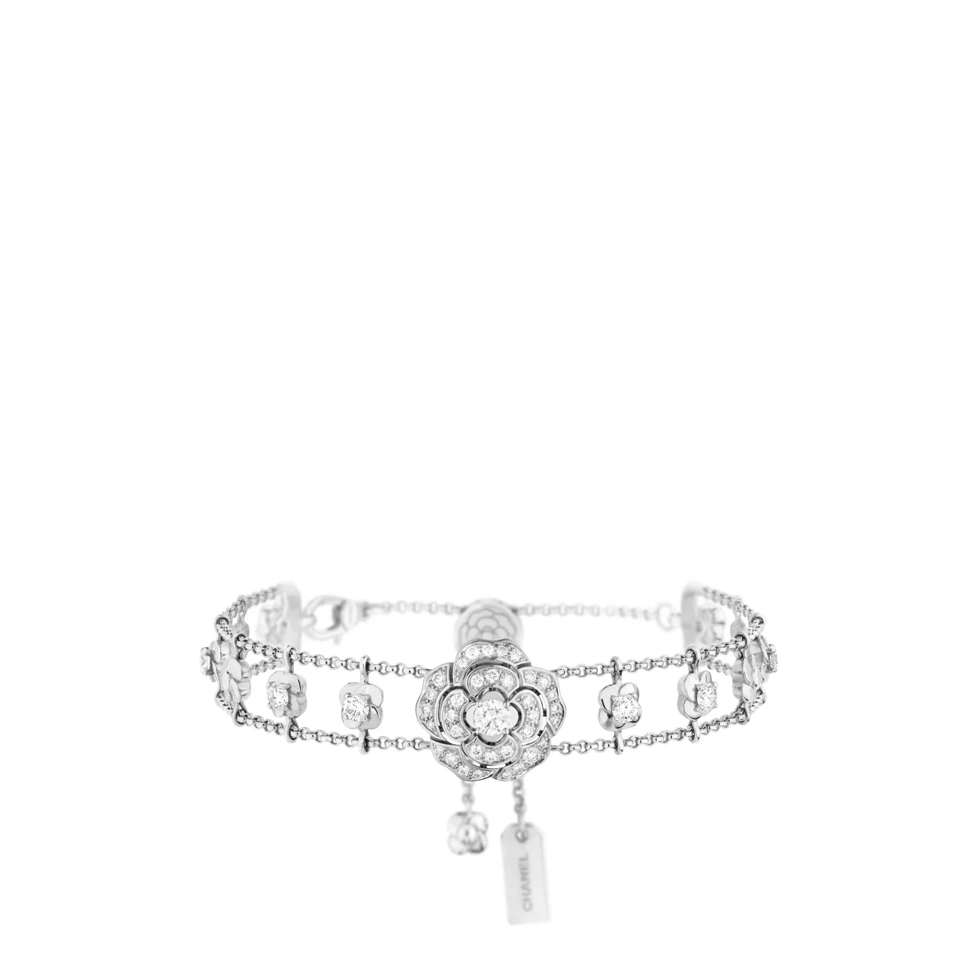 Bouton de Camélia bracelet, 18K white gold, diamonds on the CHANEL website. 18K white gold, diamonds