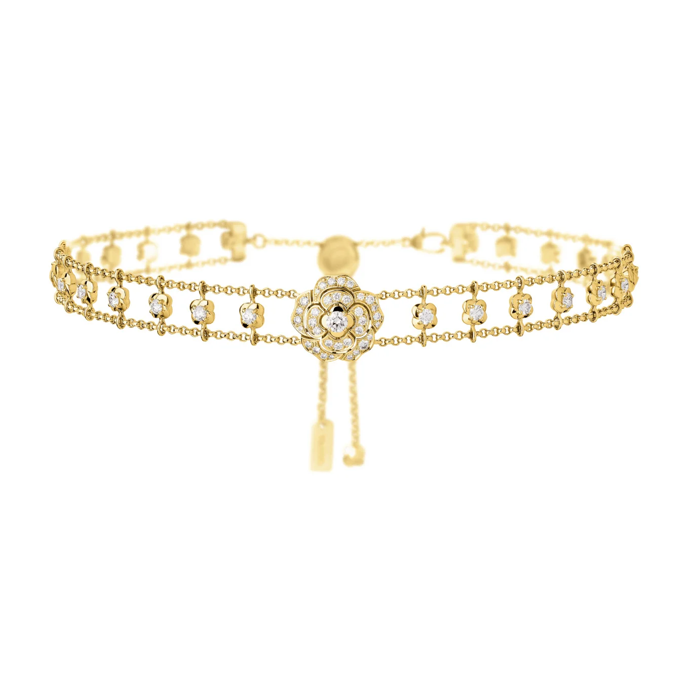 Bouton de Camelia choker, 18K yellow gold, diamonds on the CHANEL website. 18K yellow gold, diamonds