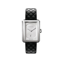 BOY·FRIEND Watch, Medium version, steel, quilted pattern calfskin strap on the CHANEL website. Medium version, steel, quilted pattern calfskin strap