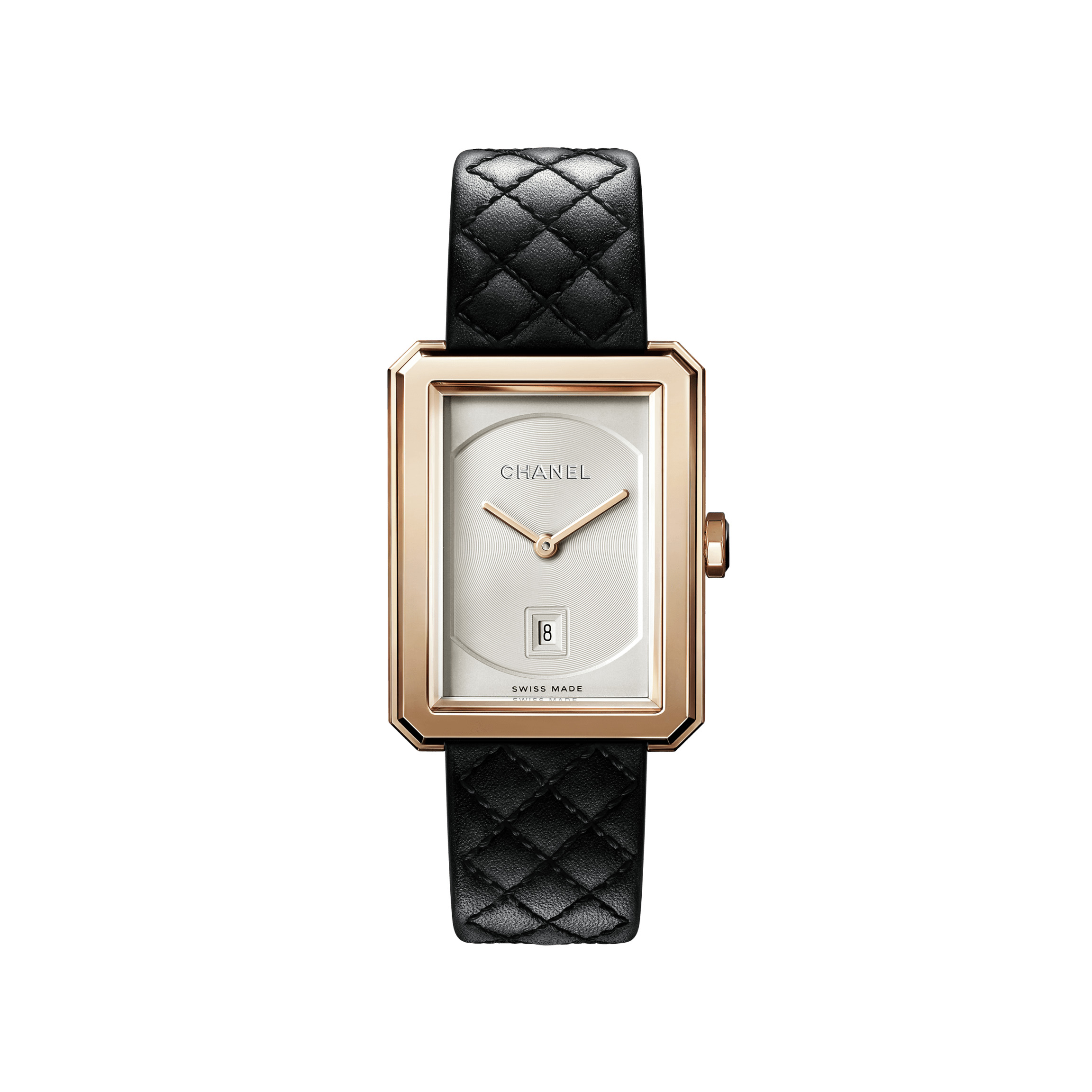 BOY·FRIEND Watch, Medium version, BEIGE GOLD, quilted pattern calfskin strap on the CHANEL website. Medium version, BEIGE GOLD, quilted pattern calfskin strap