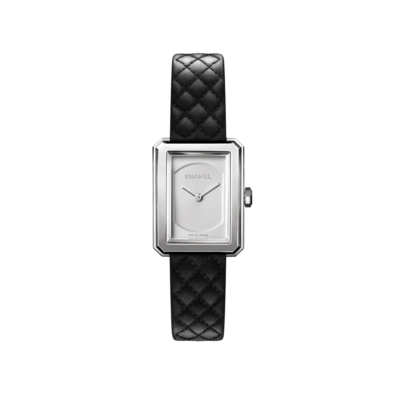 BOY·FRIEND Watch, Small version, steel, quilted pattern calfskin strap on the CHANEL website. Small version, steel, quilted pattern calfskin strap