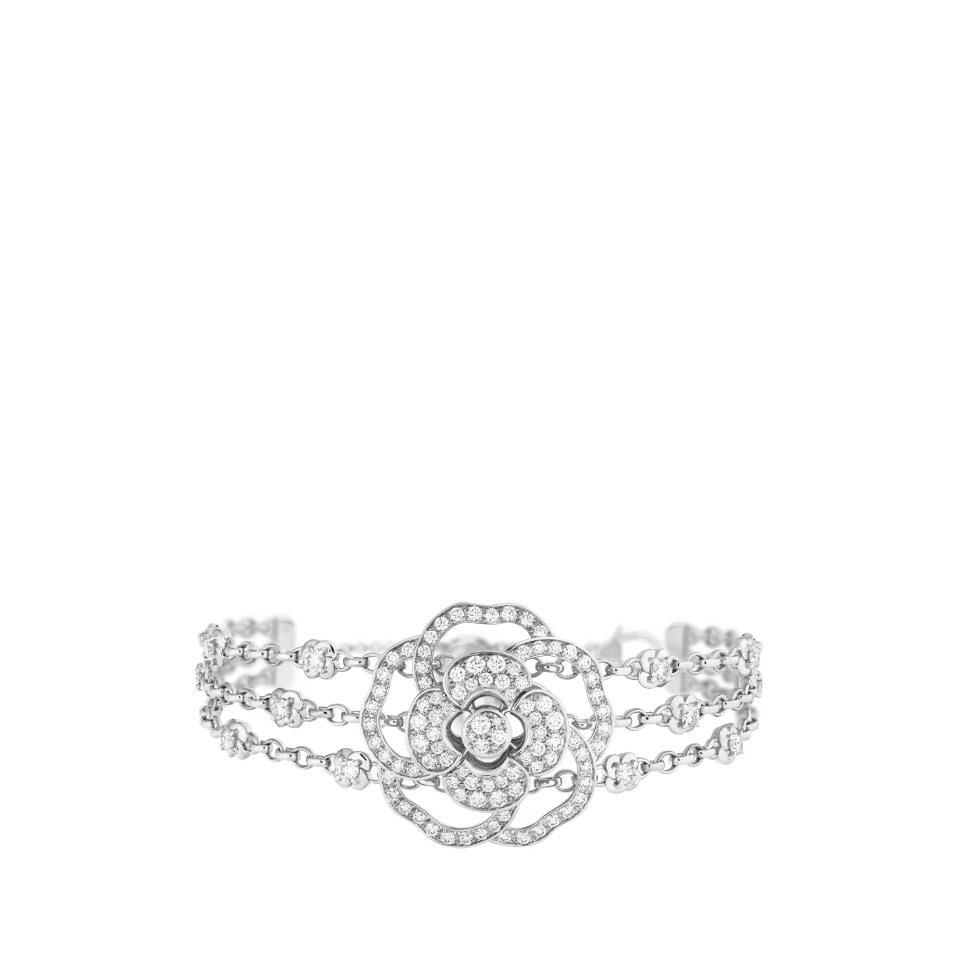 Camelia Bloom supple cuff, 18K white gold, diamonds on the CHANEL website. 18K white gold, diamonds