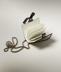 Clutches with Chain of the Fall-Winter 2022/23 Pre-Collection collection: Card Holder with Chain, lambskin & gold-tone metal, black on the CHANEL official website. Lambskin & Gold-Tone Metal DIMENSIONS 4.3 × 2.9 × 1 in