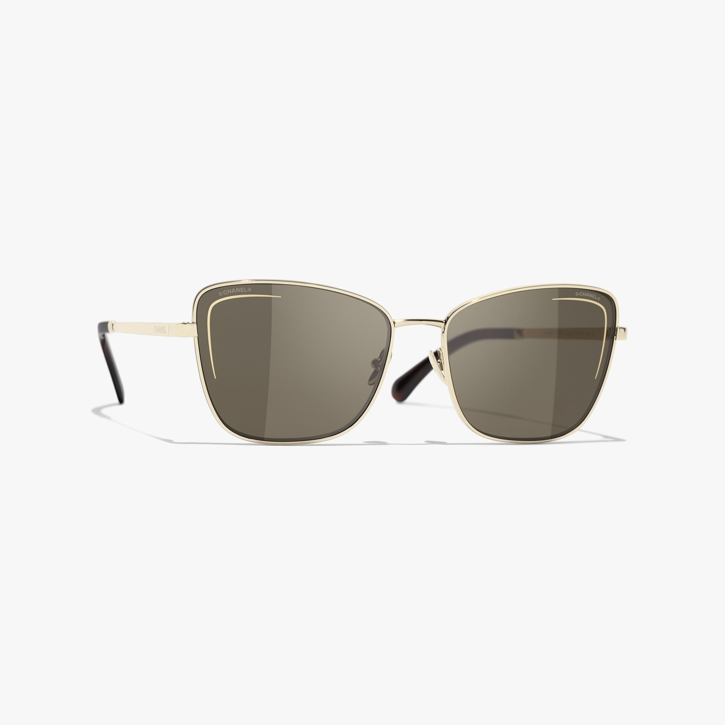 Cat Eye Sunglasses, metal, gold & brown on CHANEL official website. Metal