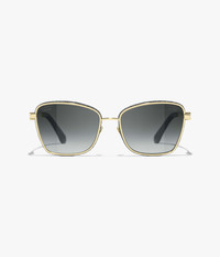 Materials: Metal, Calfskin & Denim Color: Frame: Gold - Lenses: Gray Protection: 100% UVA and UVB Protection CE Category: Lenses are UV Category Filter 3 Compatibility: Compatible with prescription lenses Country of manufacture: Italy Reference: Ref. A71694 X02609 L9518