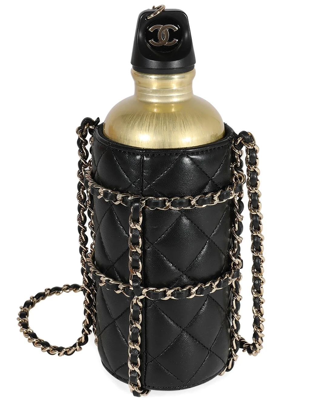 - About the brand: Founded by Coco Chanel in 1910, this French luxury fashion house revolutionized haute couture. Chanel offers exceptional and uncomplicated fashion, accessories, beauty, and luxury goods. - This is an authentic, pre-loved piece. This item is in very good condition and shows light signs of wear. This item is in very good condition with minor signs of wear. light scuffing at exterior. scratching at hardware. scuffing at bottle top and scratching at base. - For more information on condition, please see our condition guide at the bottom - Color/pattern: black; gold - Leather - Measures approximately 3.00in x 9.00in x 3.00in - Please note: All measurements were taken by hand and are approximate; slight variations may occur. - The Pre-Loved Condition Guide - Our products are 100% genuine. In some cases we purchase merchandise from trusted independent suppliers and not directly from the brand owner. In all cases we stand by the authenticity of every product sold on our site.