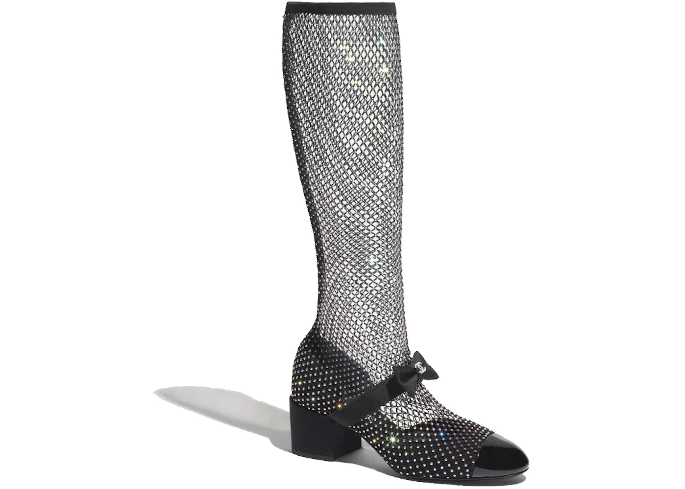 Chanel Resille 55mm Knee High Mary Janes Black Crystal Patent Calfskin