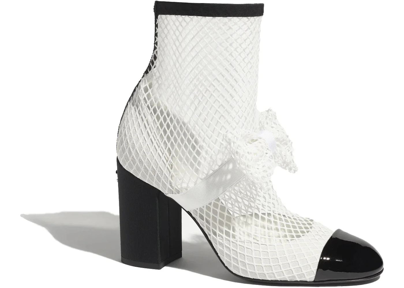 Chanel Resille 90mm Mary Janes White Black Patent Calfskin