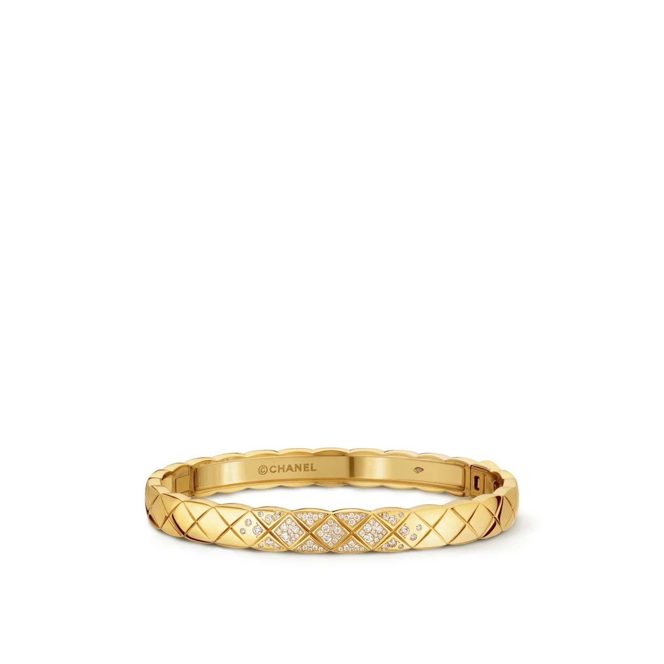 Coco Crush bracelet, Quilted motif, 18K yellow gold, diamonds on the CHANEL website. Quilted motif, 18K yellow gold, diamonds