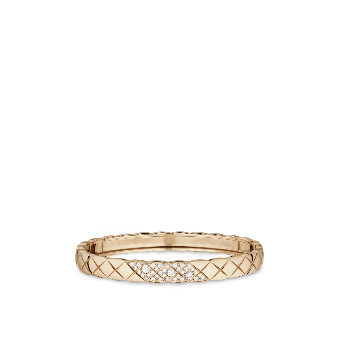 Coco Crush bracelet, Quilted motif, 18K BEIGE GOLD, diamonds on the CHANEL website. Quilted motif, 18K BEIGE GOLD, diamonds