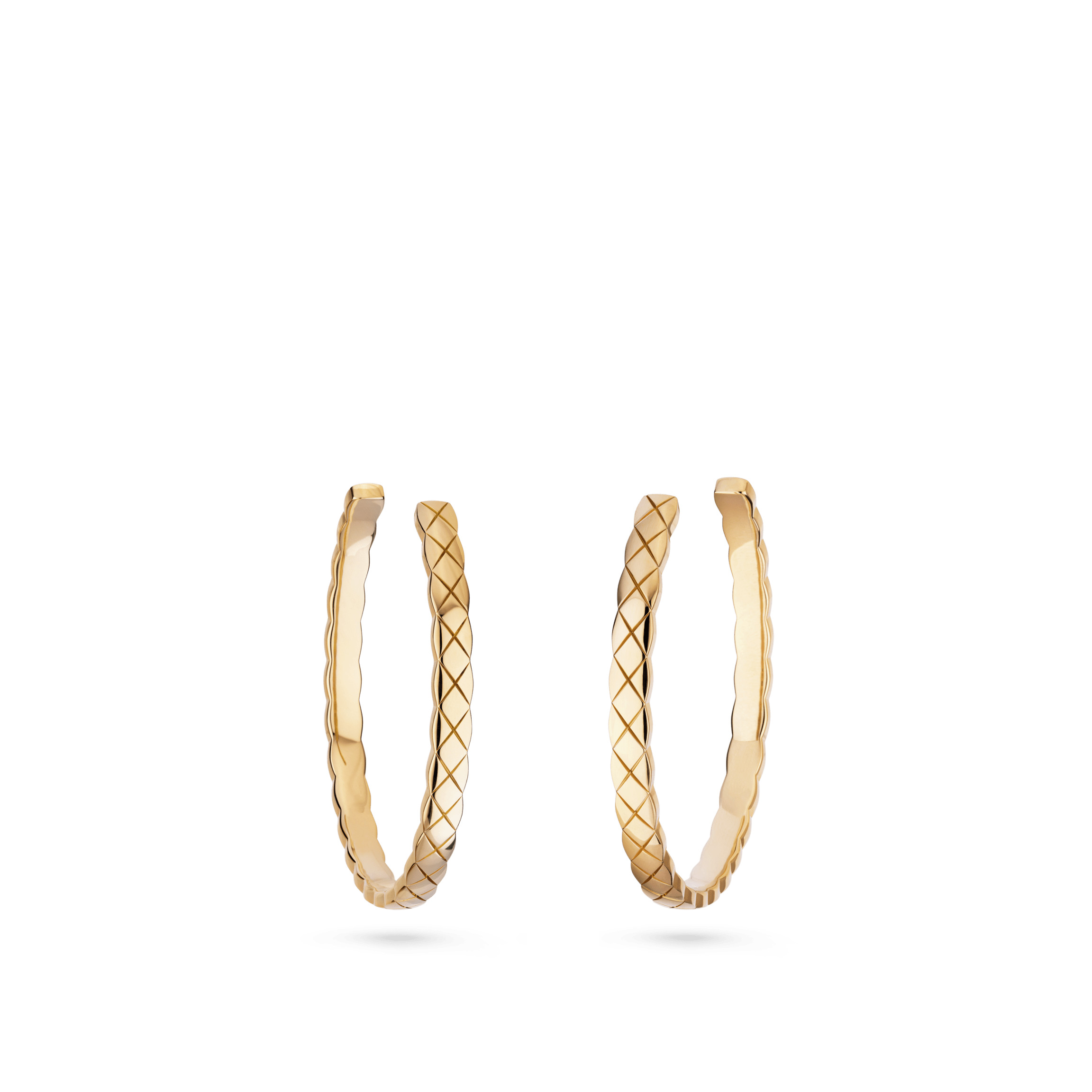 Coco Crush hoop earrings, Quilted motif, 18K BEIGE GOLD on the CHANEL website. Quilted motif, 18K BEIGE GOLD