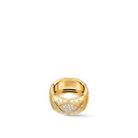 Coco Crush ring, Quilted motif, large version, 18K yellow gold, diamonds on the CHANEL website. Quilted motif, large version, 18K yellow gold, diamonds