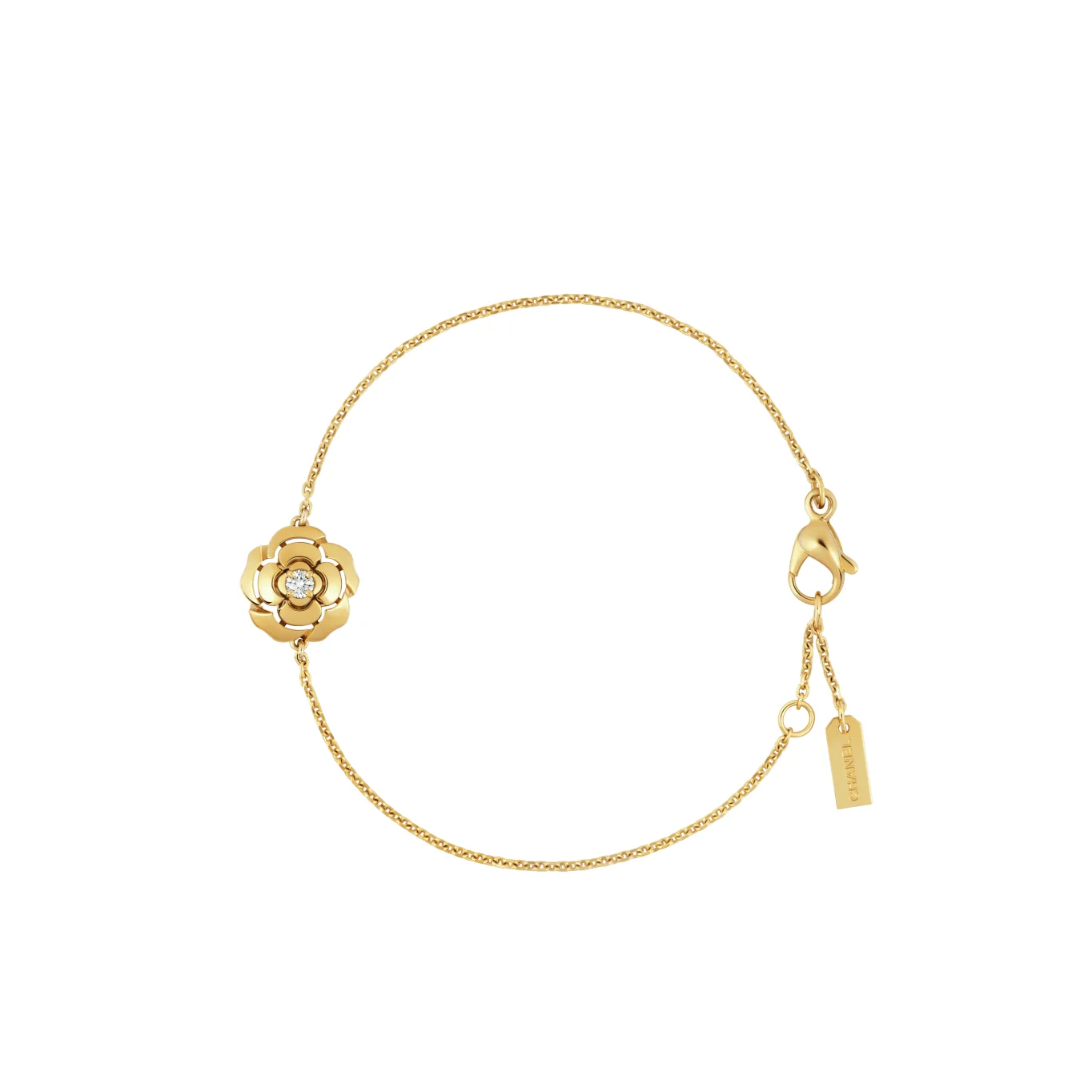 Extrait de Camelia bracelet, 18K yellow gold, diamond on the CHANEL website. 18K yellow gold, diamond