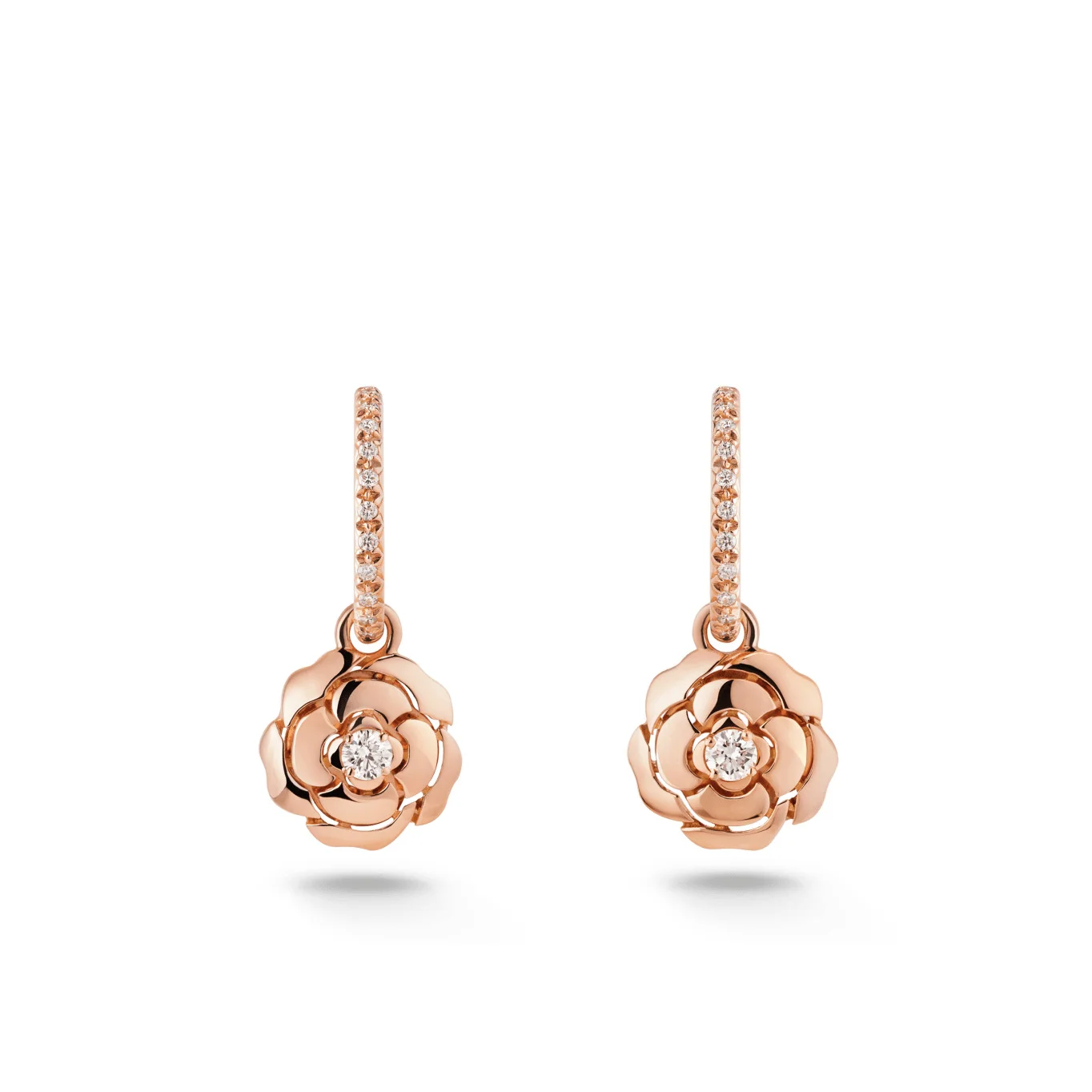 Extrait de Camélia earrings, 18K pink gold, diamonds on the CHANEL website. 18K pink gold, diamonds