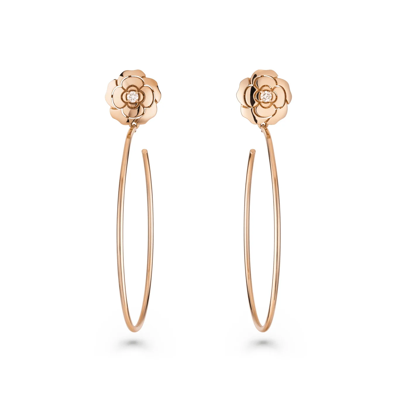 Extrait de Camélia hoop earrings, 18K pink gold, diamonds on the CHANEL website. 18K pink gold, diamonds