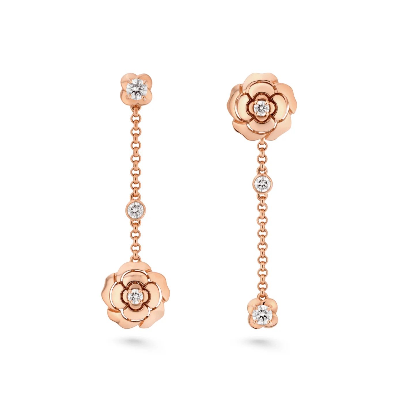 Extrait de Camélia transformable earrings, 18k pink gold, diamonds on the CHANEL website. 18k pink gold, diamonds