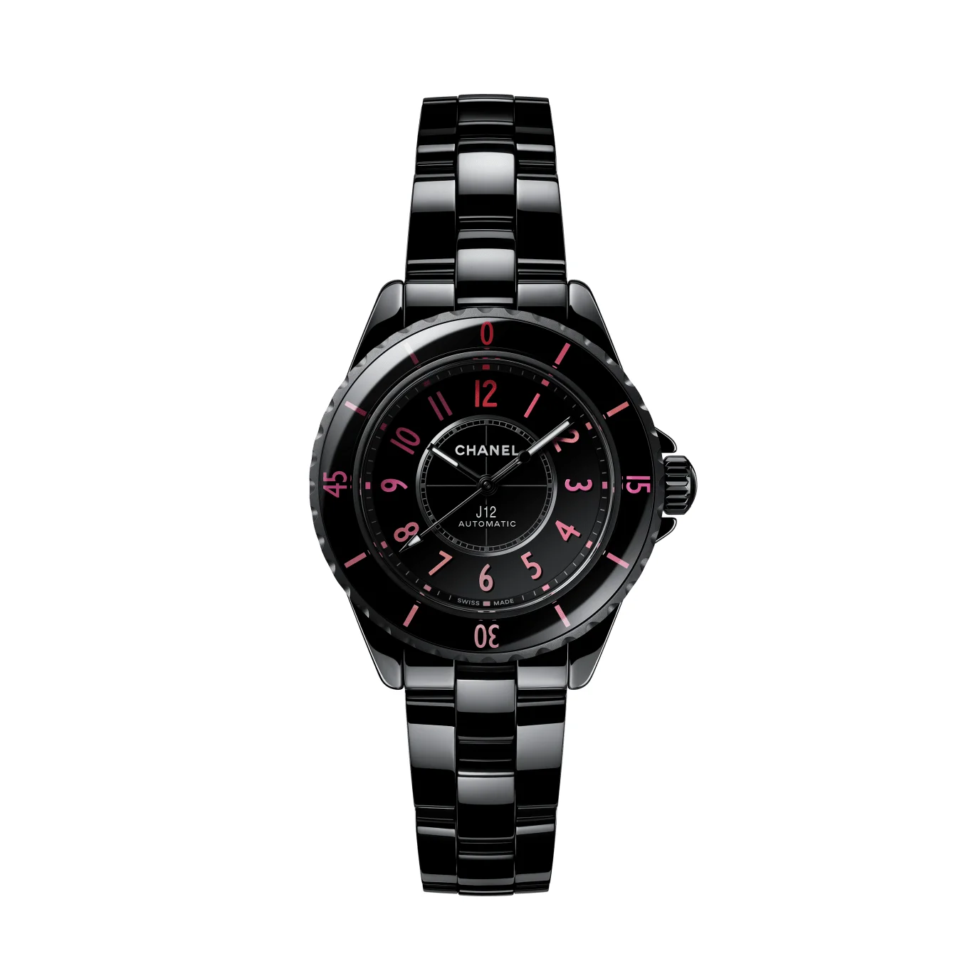 J12 BLUSH WATCH CALIBER 12.2, 33MM, Black highly resistant ceramic and matte black-coated steel on the CHANEL website. Black highly resistant ceramic and matte black-coated steel