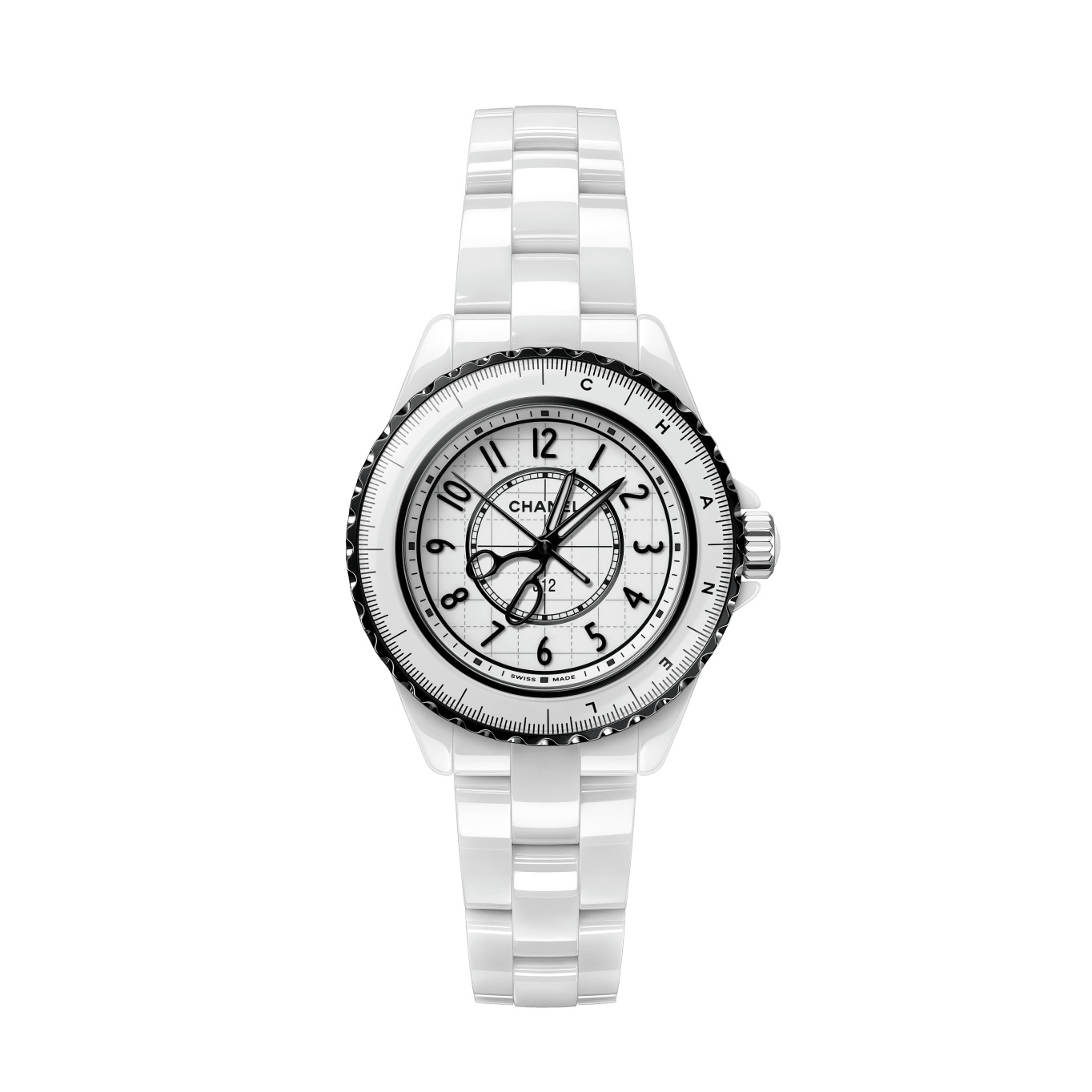 J12 COUTURE Watch, 33MM, White highly resistant ceramic and steel on the CHANEL website. White highly resistant ceramic and steel