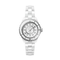 J12 Watch Caliber 12.2, 33 MM, White highly resistant ceramic and steel, diamond indicators on the CHANEL website. White highly resistant ceramic and steel, diamond indicators
