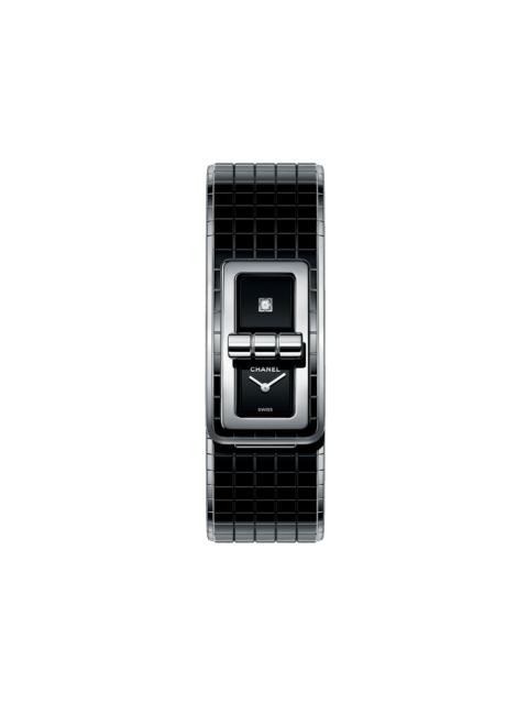 J12∙XS Watch, 19 mm, Black highly resistant ceramic and steel, diamond flange and bracelet on the CHANEL website. Black highly resistant ceramic and steel, diamond flange and bracelet