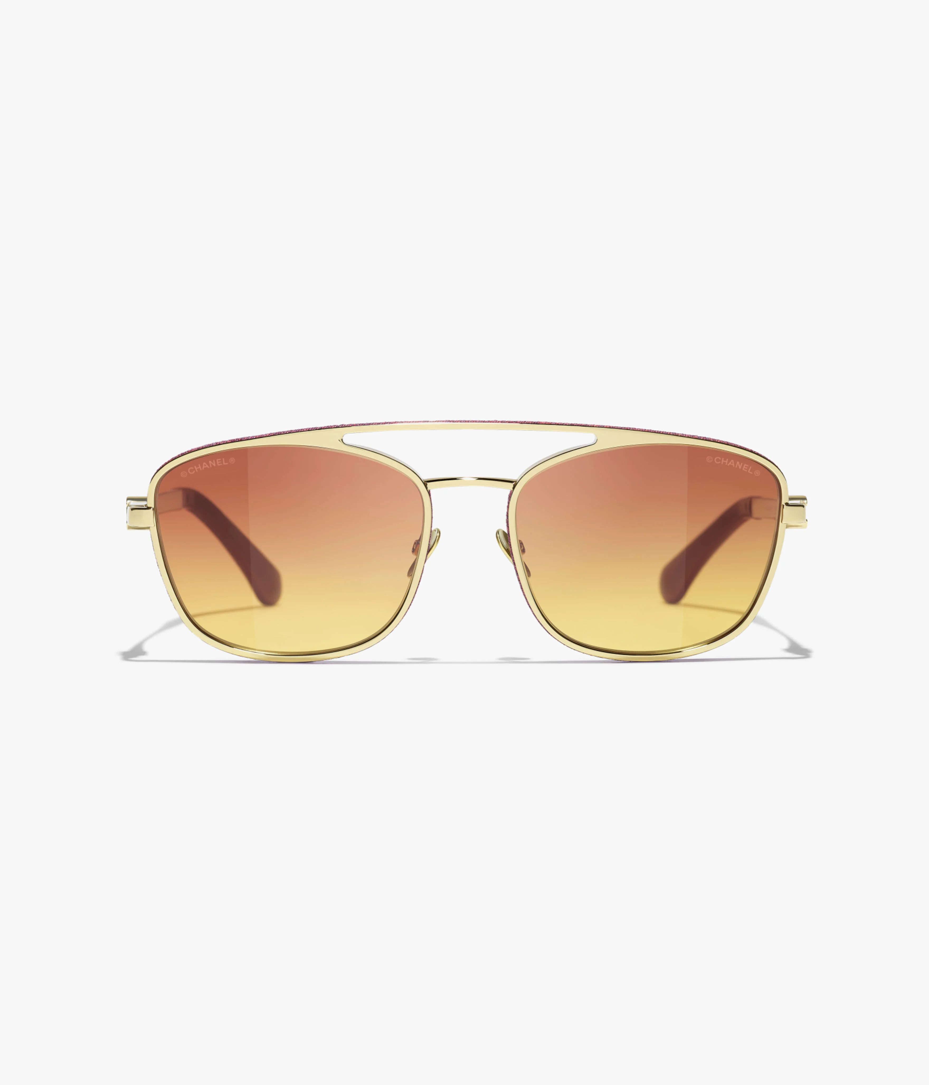 Materials: Metal, Calfskin & Denim Color: Frame: Gold - Lenses: Orange Protection: 100% UVA and UVB Protection CE Category: Lenses are UV Category Filter 2 Compatibility: Compatible with prescription lenses Country of manufacture: Italy Reference: Ref. A71695 X02610 L1814