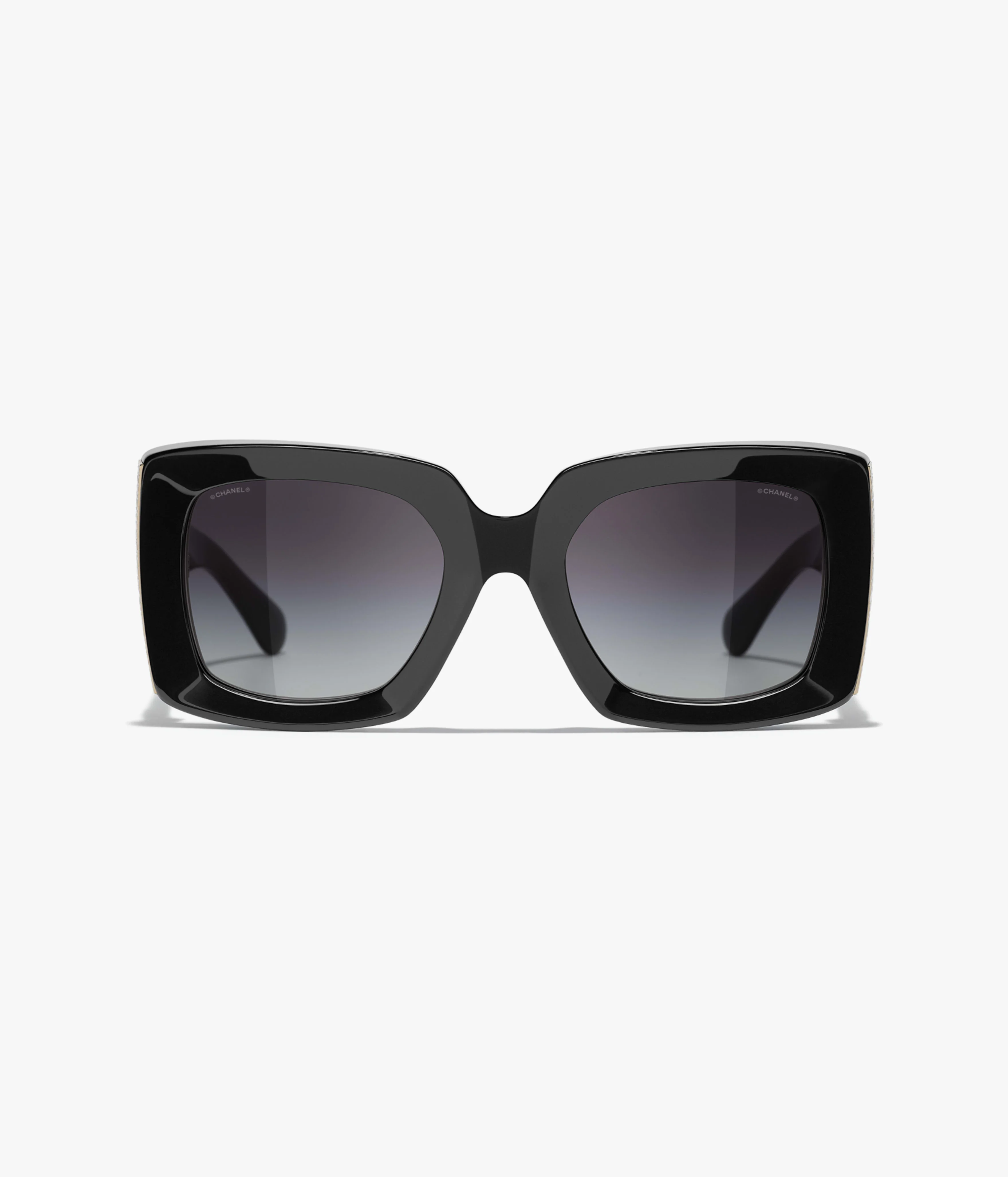 Rectangle Sunglasses, acetate, black & gold on CHANEL official website. Acetate