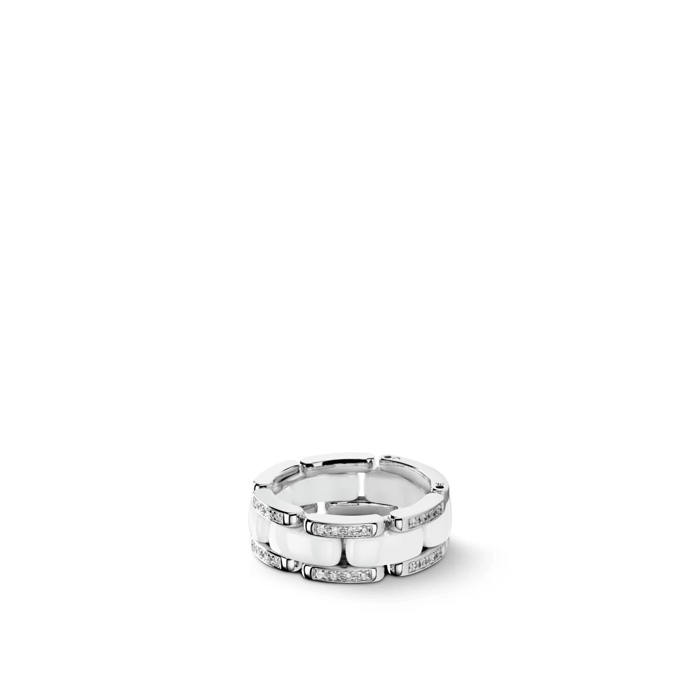 Ultra ring, Medium version, 18K white gold, diamonds, white ceramic on the CHANEL website. Medium version, 18K white gold, diamonds, white ceramic