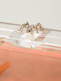 'Pandora' clutch Clear and orange PVC and leather 'Pandora' clutch from Charlotte Olympia featuring a top clasp fastening, fringed edges, a signature gold-tone and crystal spider and an internal zip pouch. Made in Italy Composition Outer: Calf Leather 100%, PVC 100% SIZE & FIT Measurement WIDTH 7.48 in(19 cm) HEIGHT 4.33 in(11 cm) DEPTH 1.57 in(4 cm)