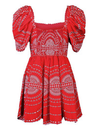 puff-sleeve embroidered dress