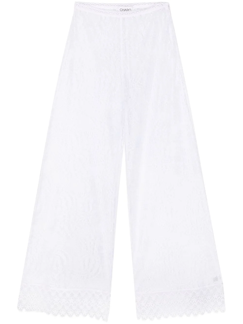 Jeret wide-leg trousers Highlights - White - Stretch-design - Chantilly lace - Semi-sheer construction - High-waisted - Wide leg - Concealed side hook and zip fastening - Scallop hem - Unlined Imported Composition Polyester 90%, Elastane 10% Washing instructions Hand Wash