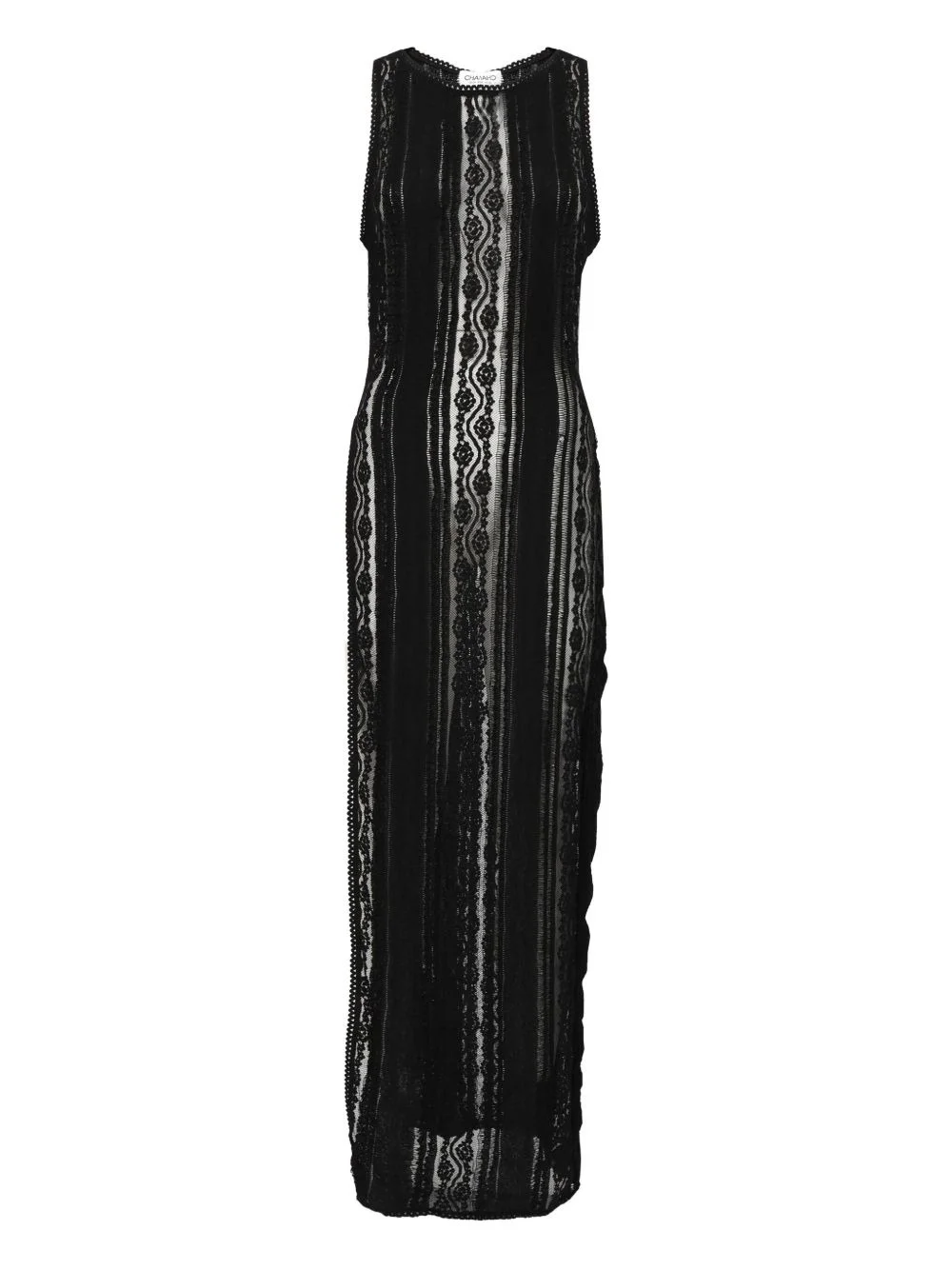 lace-pattern sleeveless dress Highlights - Black - Lace pattern - Sleeveless design - Round neck - Side slits - Floor-length Imported Composition Cotton 50%, Nylon 47%, Spandex/Elastane 3% Washing instructions Read Manufacturer Guidelines