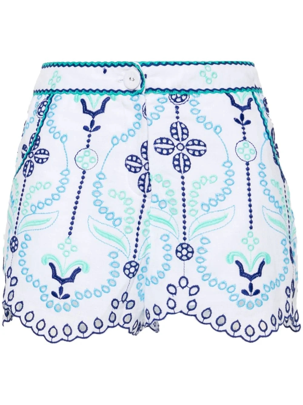 Mason floral-embroidered shorts Highlights - White - Blue - Cotton blend - Floral embroidery - Embroidered motif - Cut-out detailing - Scallop edge - Thigh-length - Full lining - Concealed fly and button fastening Imported Composition Cotton 60%, Linen/Flax 20%, Polyester 20% SIZE & FIT Model measurements Height 5 ft 10 in(1.78 m) Bust/Chest 33.07 in(84 cm) Hips 36.61 in(93 cm) Waist 24.8 in(63 cm) FittingInformation Designed for a slim fit with a close-fitting internal layer Made from a midweight non-stretch fabric This piece fits true to size – take your usual size Washing instructions Hand Wash