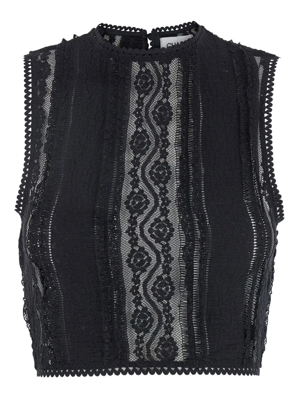 Asteria lace-detail top Highlights - Black - High neck - Intricate lace panels - Scalloped edges - Keyhole back - Sleeveless design Imported Composition Cotton 50%, Nylon 47%, Spandex/Elastane 3% Washing instructions Read Manufacturer Guidelines