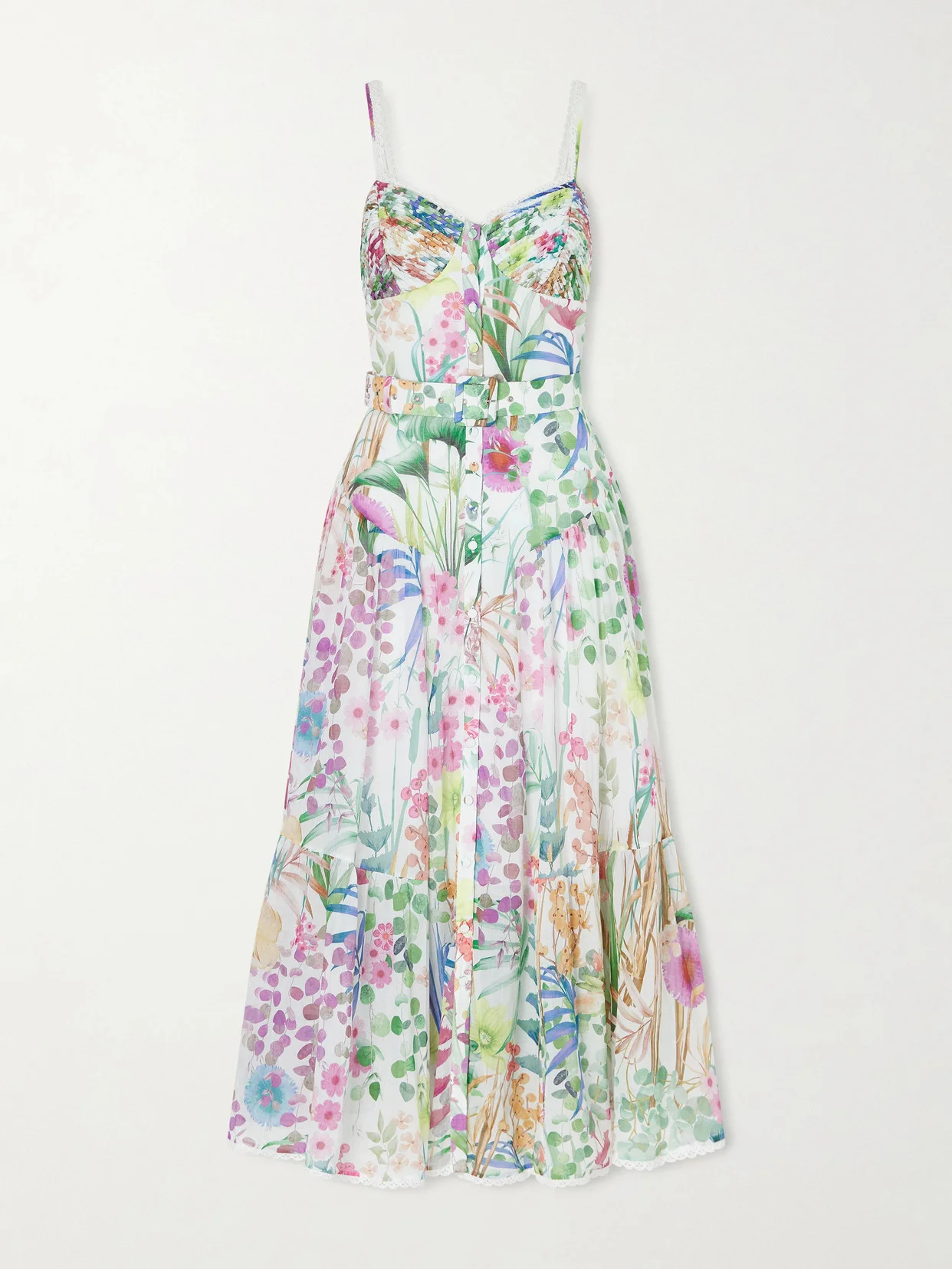Charo Ruiz's collections embody the warm spirit of Ibiza. This 'Cael' dress is made from cotton-blend that's patterned with vivid multicolored florals and has a structured corset-inspired bodice and floaty paneled skirt. Wear yours with strappy sandals.