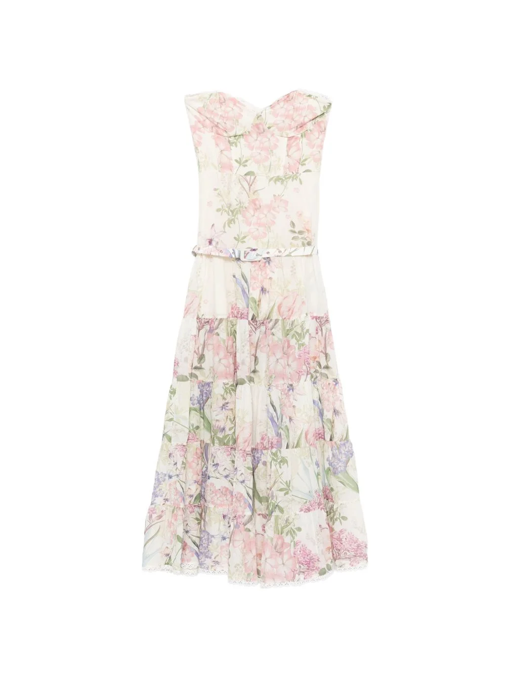 Danny floral-print belted maxi dress Highlights - Beige and multicolour - Floral print - Detachable belt - Tiered design - Strapless - Lace trim Imported Composition Cotton 90%, Polyester 10% Washing instructions Hand Wash