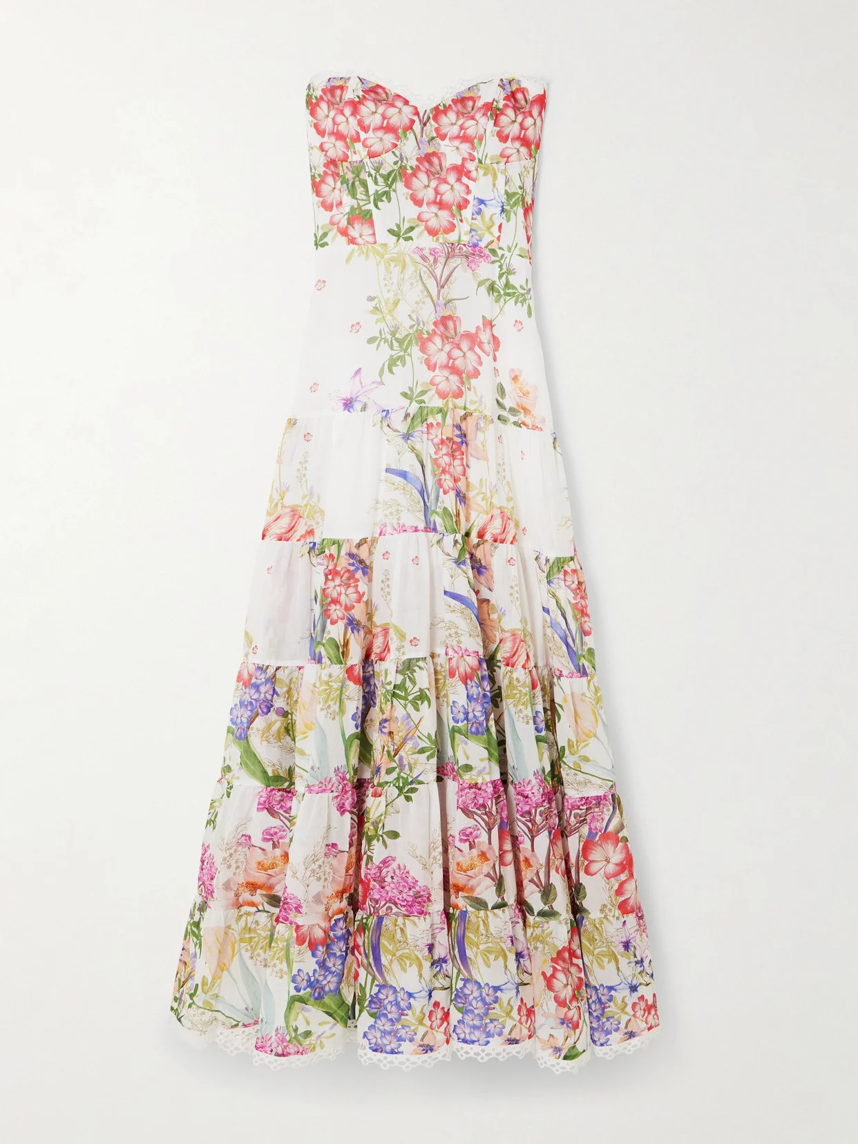 Danny Strapless Tiered Floral-print Cotton-blend Voile Maxi Dress
