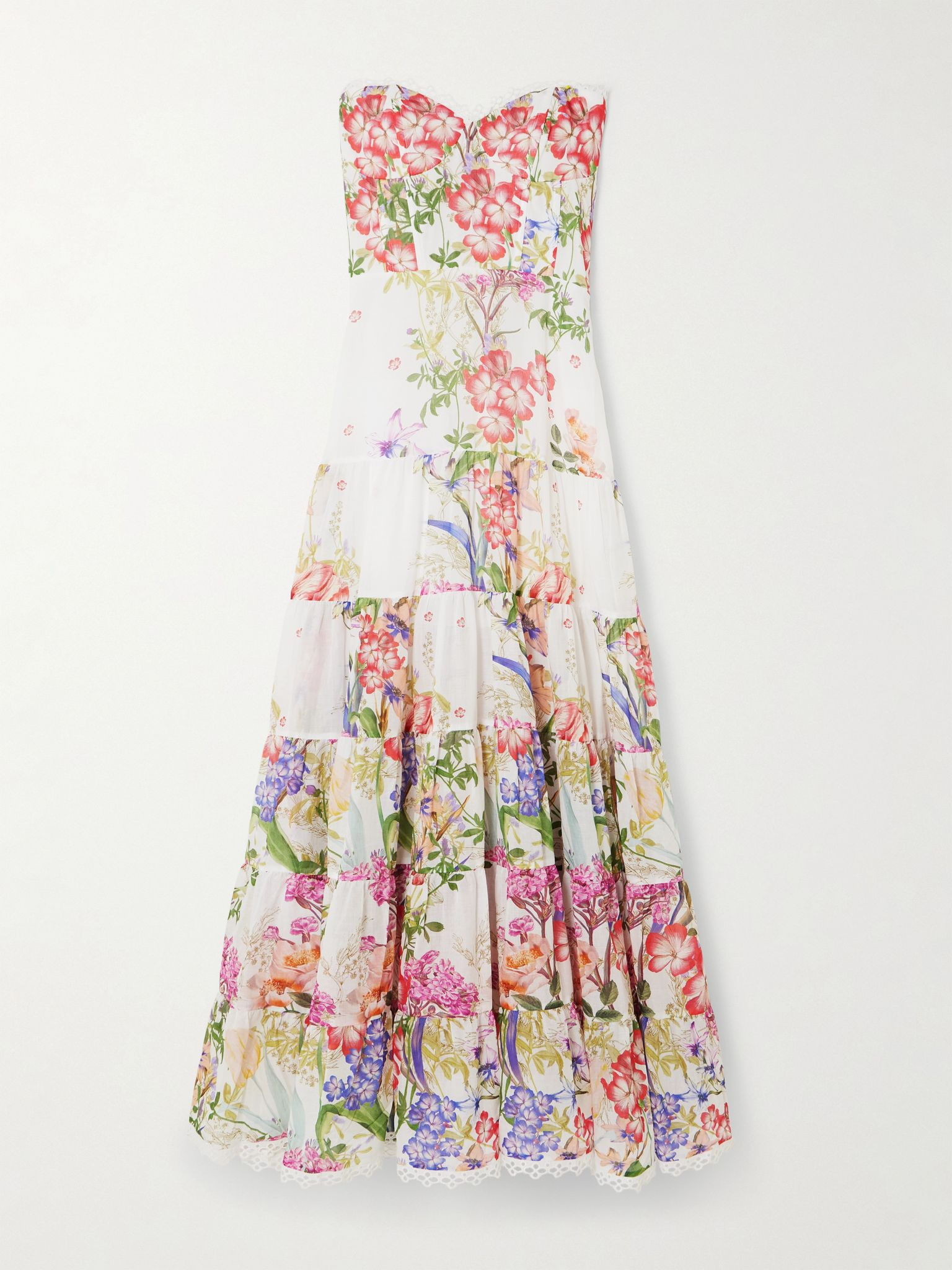 Danny strapless tiered floral-print cotton-blend voile maxi dress White
