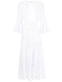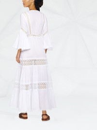 floral-lace embroidered V-neck dress Made in the heart of Ibiza, Charo Ruiz Ibiza creates effortless pieces inspired by the beach lifestyle. Showcasing intricate floral-lace embroidery, this maxi dress from the brand's SS22 collection pairs flared sleeves with an exaggerated V-neck for a timeless feel. Imported Composition Cotton 90%, Polyester 10% SIZE & FIT Model measurements Height 5 ft 10 in(1.78 m) Bust/Chest 30.31 in(77 cm) Hips 36.61 in(93 cm) Waist 24.8 in(63 cm) FittingInformation This piece fits true to size. We recommend you get your regular size Designed for a close fit at the bust and waist, but loose at the hip Made with a mid-weight non-stretch fabric Washing instructions Hand Wash