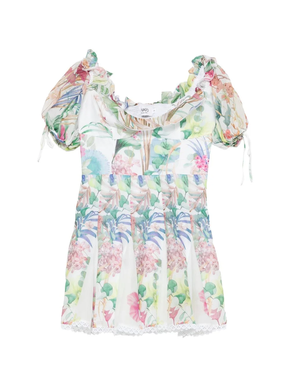 floral ruffled mini dress Highlights - White lagoon - Floral print - Ruffled detail - Lace trim - Puff sleeves - Pleats Imported Composition Cotton 90%, Polyester 10% Washing instructions Hand Wash
