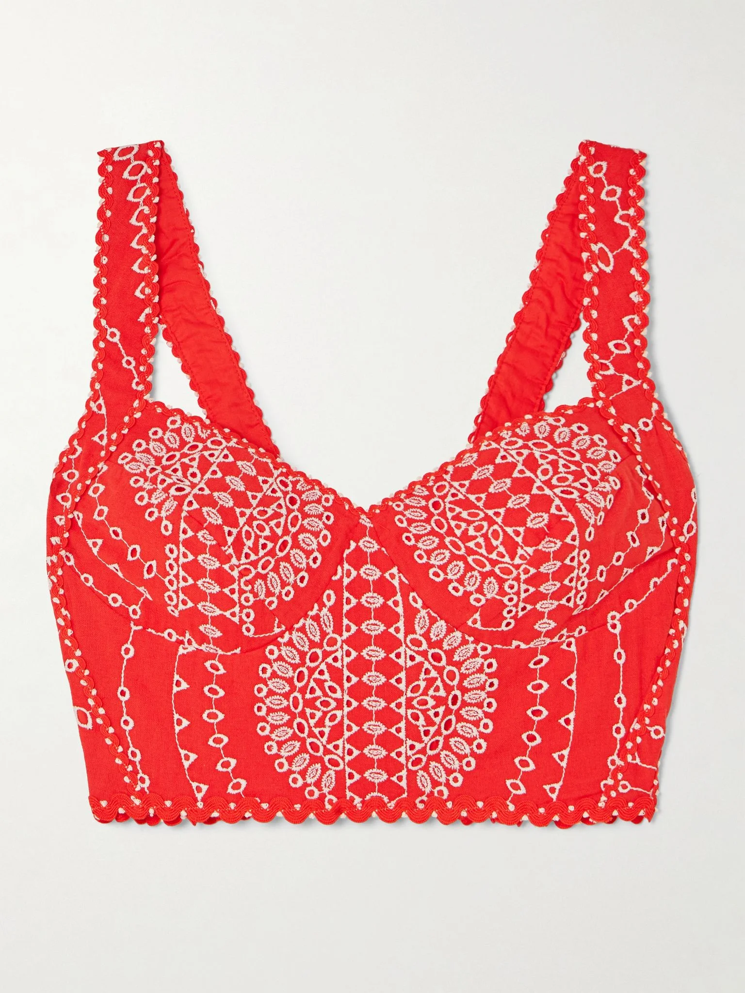 Goldie broderie anglaise cotton-blend bustier top Red
