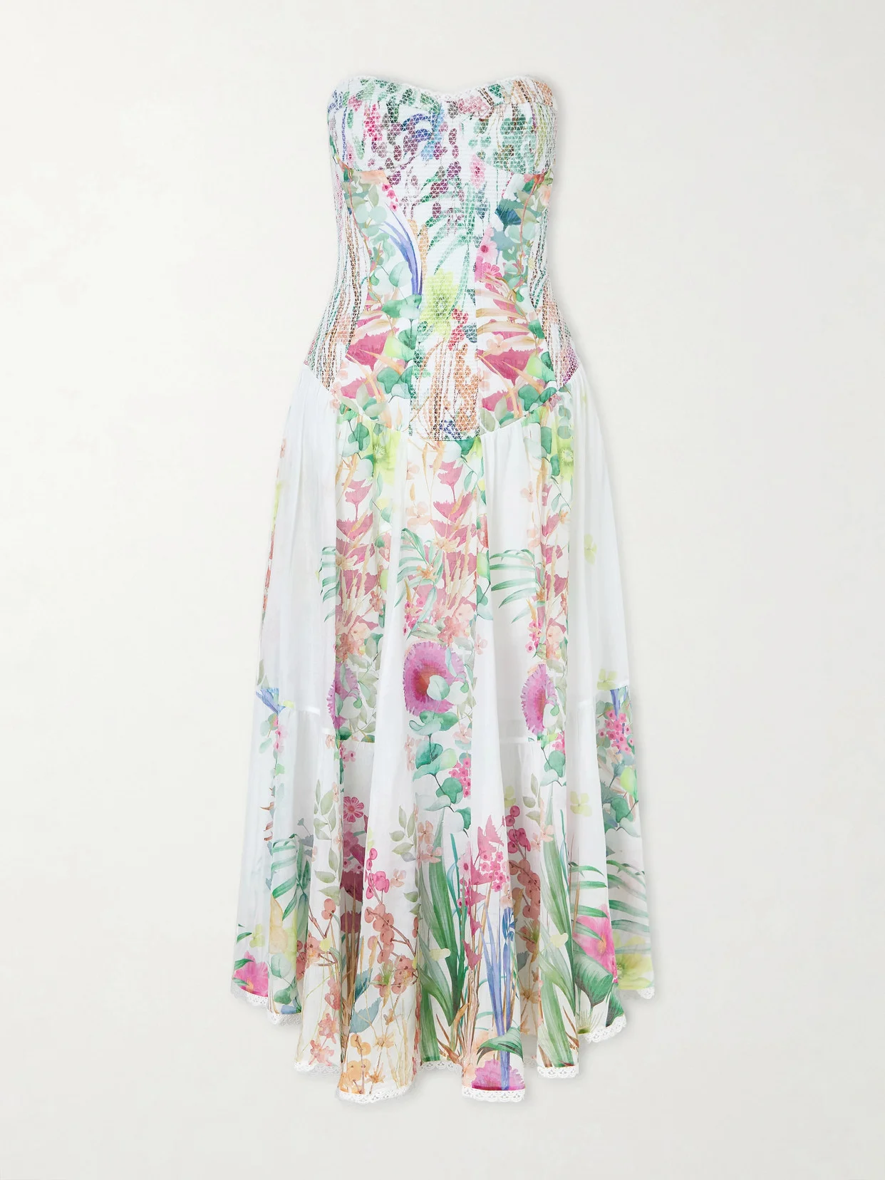 Illyr Off-the-shoulder Smocked Floral-print Cotton-blend Voile Midi Dress