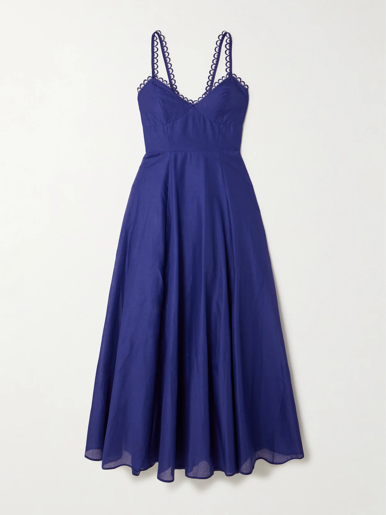 Iraso Guipure Lace-trimmed Cotton-blend Voile Midi Dress
