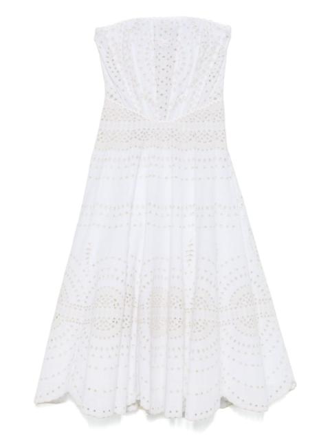 Iris dress Highlights - Black - Concealed rear zip fastening - Strapless - Scallop hem - Embroidered design Imported Composition Cotton 60%, Linen/Flax 20%, Polyester 20% SIZE & FIT FittingInformation Designed for a close fit at the chest and waist with a loose fit at the hip Made from a midweight non-stretch fabric Washing instructions Read Manufacturer Guidelines