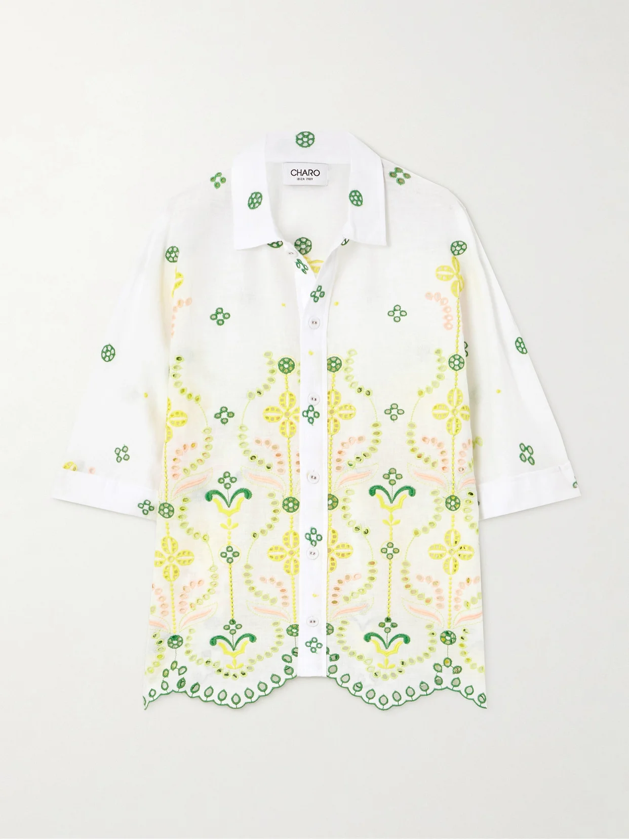 The broderie anglaise on Charo Ruiz's 'Isma' shirt is enhanced by colorful stitching. The style is made from a breezy cotton-blend and has a relaxed shape with a scalloped hem. Wear yours as a set with the matching shorts.
