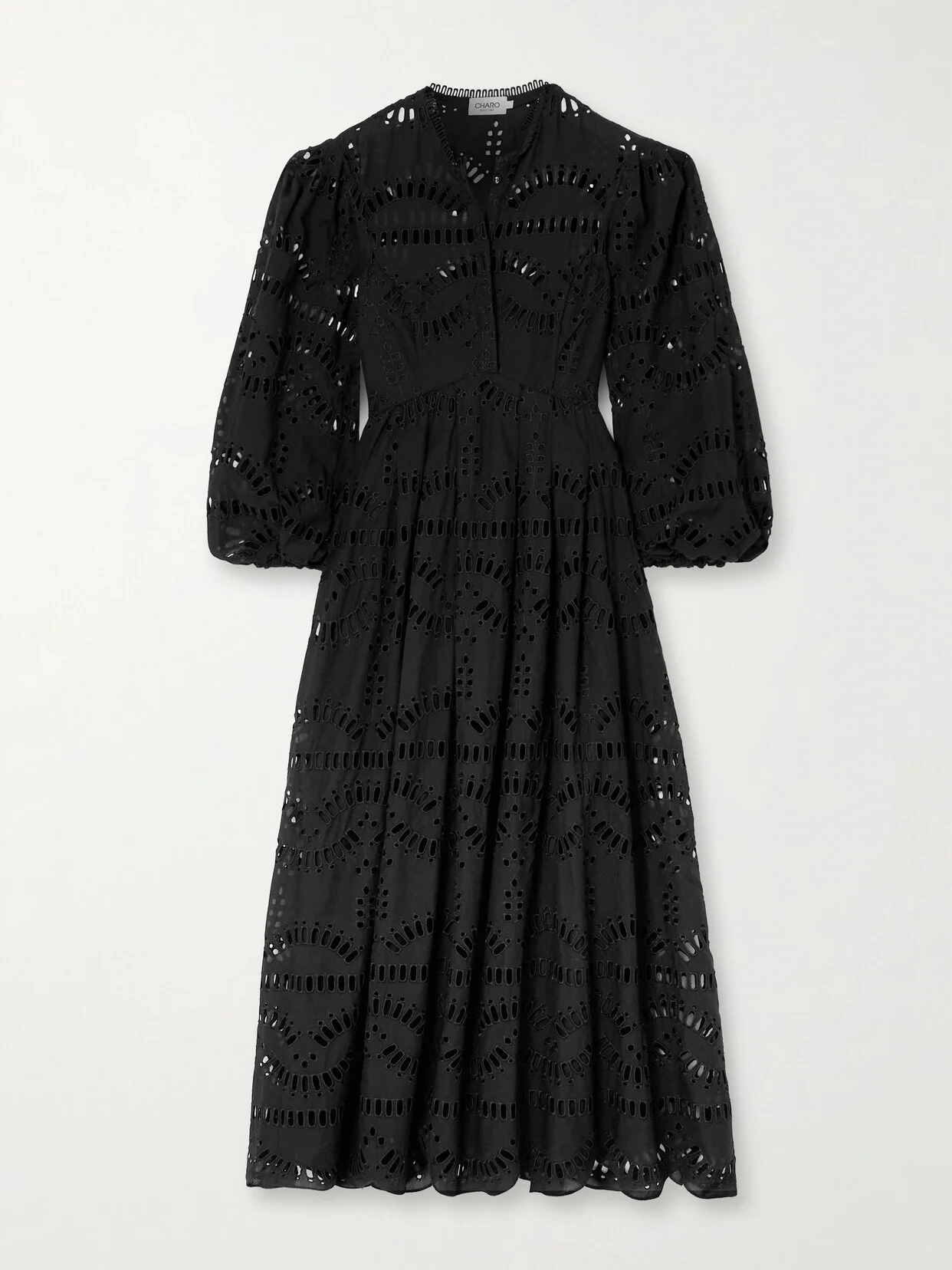 Based in Ibiza, Charo Ruiz's collections capture the free-spirited, bohemian vibe the Spanish island is known for. This 'Kaika' dress is made from breezy cotton-blend and has a pleated midi-length skirt with a scalloped hem. The broderie anglaise pattern is so pretty.